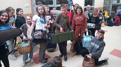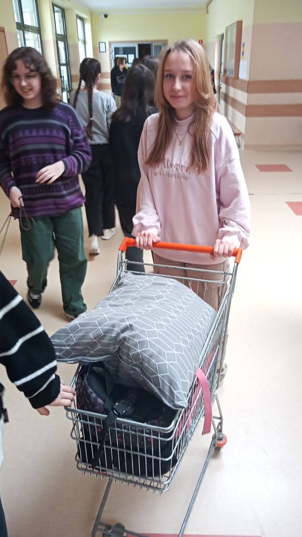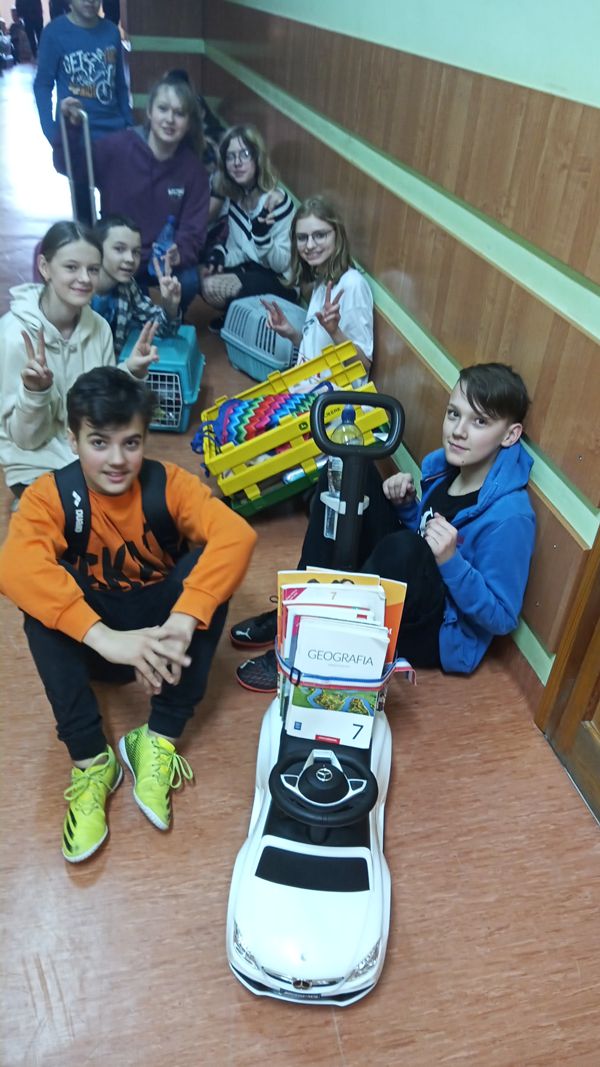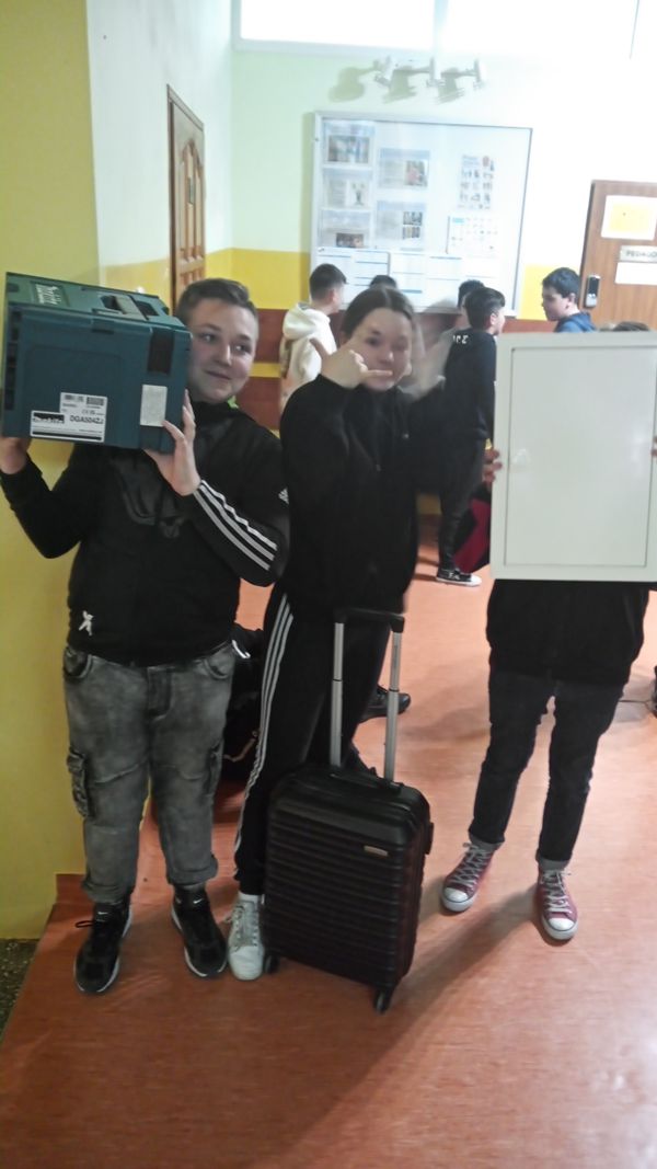 Uczniowie wykazali się niesamowitą kreatywnością! W poniedziałek, 1 kwietnia odbył się „Dzień bez plecaka. Tego dnia uczniowie mieli za zadanie spakować swój „bagaż” w coś nietypowego. Ciekawych pomysłów nie brakowało. Tradycyjne torby i plecaki poszły w kąt. Zamiast nich pojawiły się sklepowe koszyki, walizki na kółkach, wózki dla lalek, poszewki na poduszki, pufy, szuflady, transportery dla zwierzaków, a nawet taczka, nocnik czy odkurzacz.