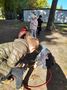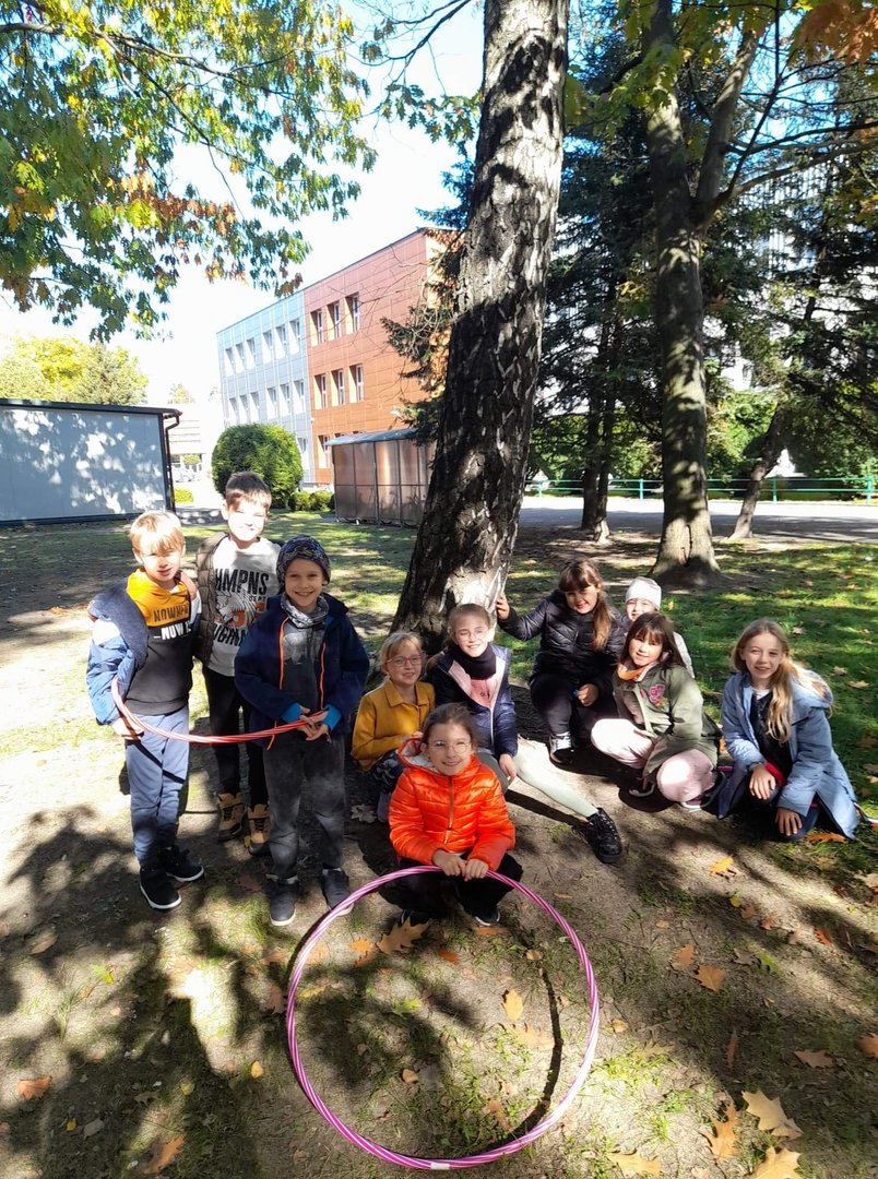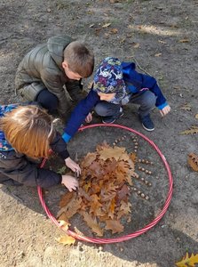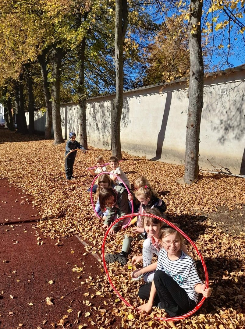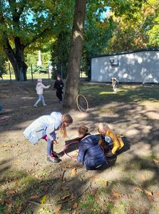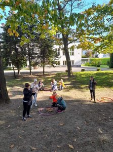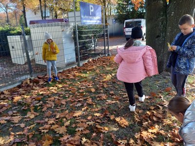 My też korzystamy z ładnej pogody spędzając czas na dworze. Spacerujemy podziwiając piękno polskiej jesieni. Odpoczywamy po zajęciach lekcyjnych oraz kreatywnie bawimy się.