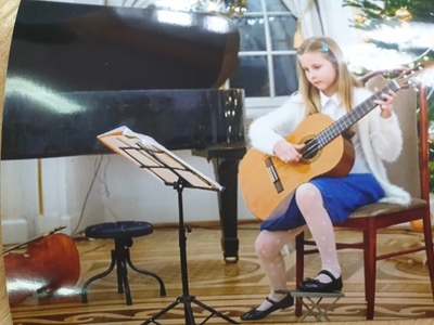 Z podziwem wysłuchaliśmy zagranego przez Karolinę z nut koncertu gitarowego.