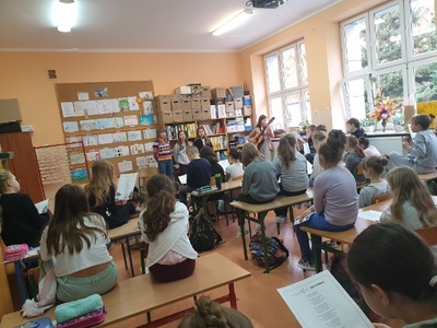 20 października 2022 roku uczniowie klasy 3b i 3c w ramach projektu „Uczniowie z pasją” zorganizowali niezwykle interesujące spotkanie. Gościem honorowym, była oczywiście uczennica z pasją: Karolina z klasy VI b naszej szkoły i jej trzy zaprzyjaźnione koleżanki z tej klasy: Maja, Helena i Oliwia.