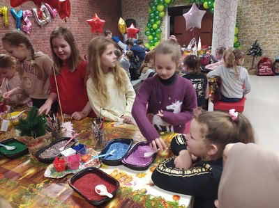 Dzieci uczestniczyły w pokazie: poznały historię i technikę wytwarzania bombek szklanych oraz sposoby ich ozdabiania. Samodzielnie mogły ozdobić swoją bombkę, którą zabrały do domu.