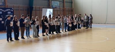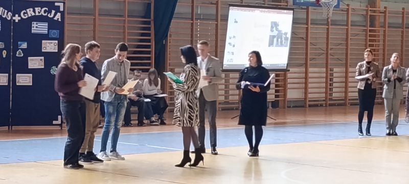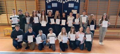 Dnia 27. 11 na uroczystym otwartym apelu w naszej szkole podsumowaliśmy tegoroczny program Erasmus+ . Uczestniczy otrzymali certyfikaty potwierdzające uczestnictwo w programie. Dziękujemy zaproszonym gościom - władzom naszej Gminy, dyrektorom szkół gminnych, dyrektor Biblioteki Publicznej w Pomiechówku, rodzicom, nauczycielom i uczniom!