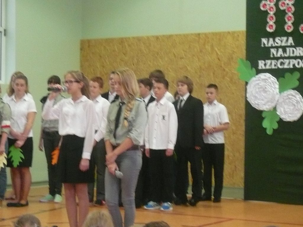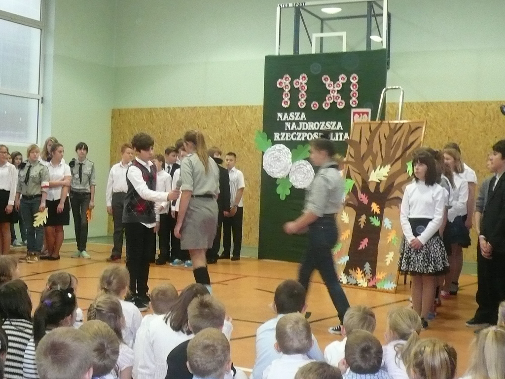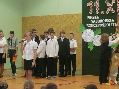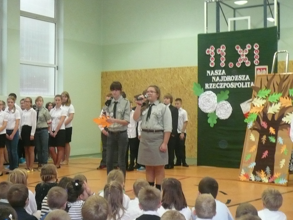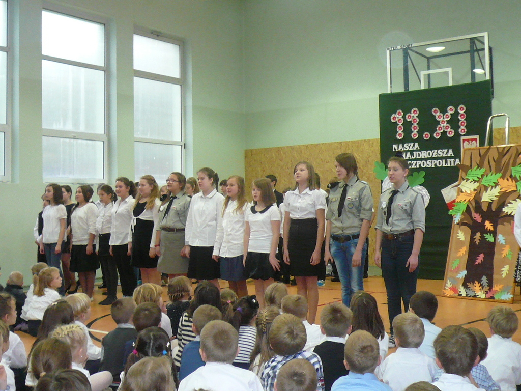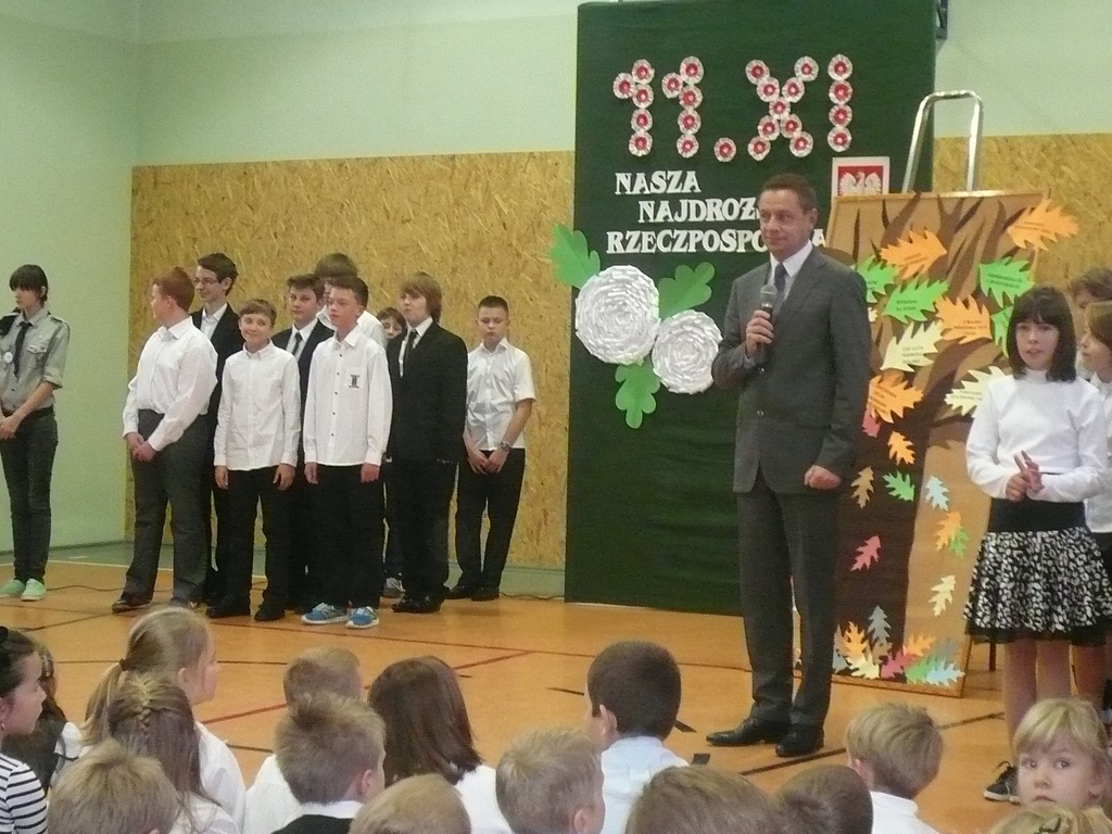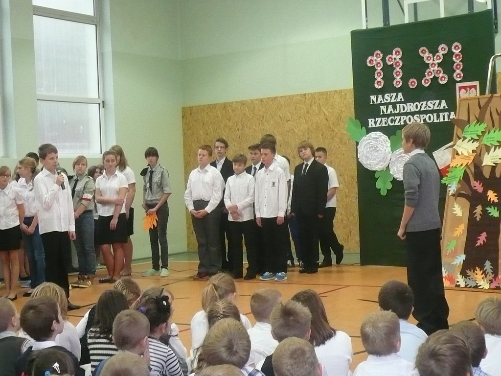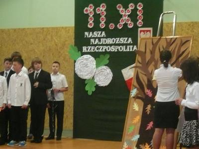 Narodowe Święto Niepodległości jest najważniejszym polskim świętem narodowym. 11 listopada 1918 roku po 123 latach niewoli Polska odzyskała niepodległość. Po latach rozbiorów, dokonanych przez Austrię, Prusy i Rosję w latach 1772-1795, powstaniach narodowych (Listopadowym 1830 i Styczniowym 1863), zmaganiach na różnych frontach, Polacy dzięki niezłomności, patriotyzmowi i bohaterstwu wywalczyli wolność. Ogromną rolę w odzyskaniu niepodległości odegrał pierwszy marszałek Polski – Józef Piłsudski. Także w Naszej szkole zorganizowany został uroczysty apel upamiętniający te wydarzenia. Uczniowie w oparciu o przygotowany program pod kierunkiem p. Joanny Kurpiewskiej i p. Marioli Tamowicz wykonali inscenizacje wydarzeń w jakich to Polska odzyskała niepodległość, natomiast zespół wokalny p. Agnieszki Żuławnik zaśpiewał piękne patriotyczne piosenki żołnierskie. Apel podsumował dyrektor szkoły p. Adam Szatkowski, przypominając jak ważne było to wydarzenie dla odbudowy państwa polskiego, a dzień 11 listopada powinien być dniem szczególnym dla każdego Polaka. |