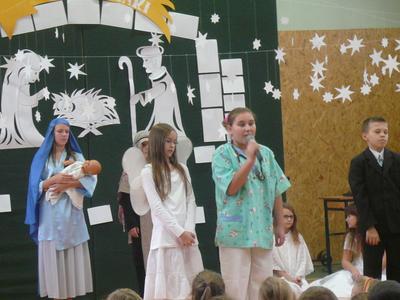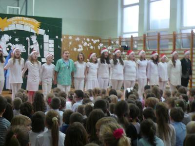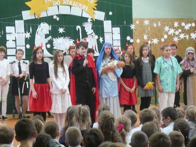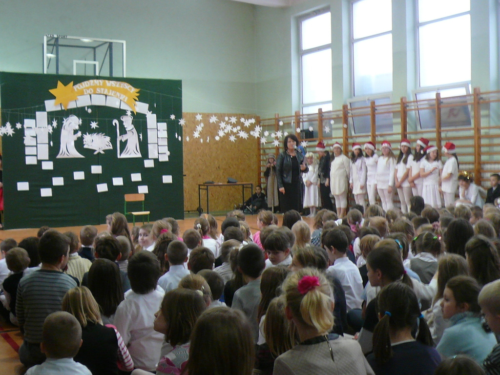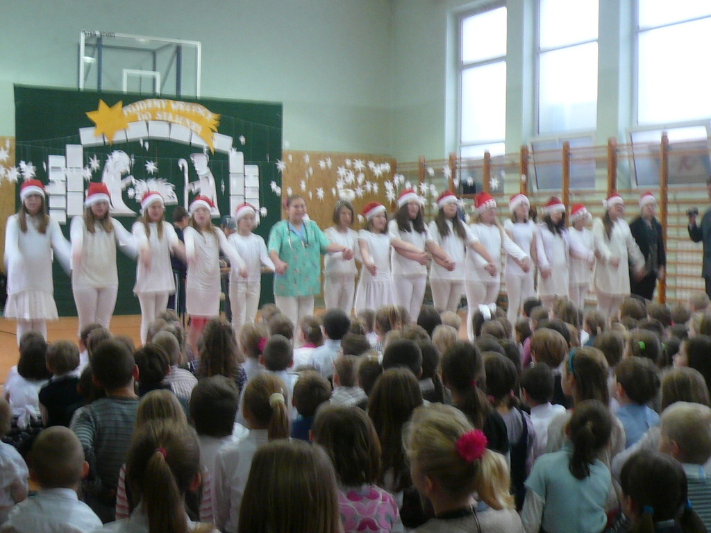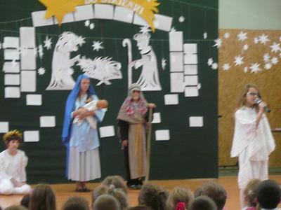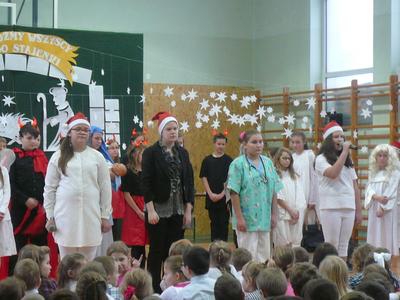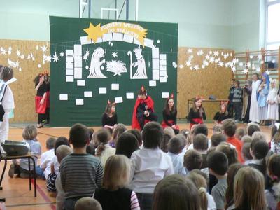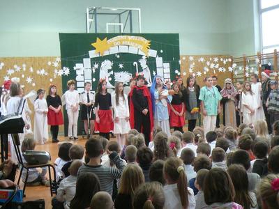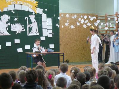 19 i 20 grudnia uczniowie Naszej szkoły wykonali przedstawienie jasełkowe podczas którego zaprezentowali wcześniej przygotowany program świąteczny. Nasze "szkolne aniołki" bardzo starannie przygotowały się do swoich ról, nie zapominajac o strojach z "tamtej epoki" :-) odpowiednich dla granej przez siebie roli. Uczniowie wykazali się wysokim poziomem aktorskim, bardzo dokładnie oddając charakter granej postaci. Uroczystość jasełkową podziwiali także rodzice, którzy ze skupieniem obserwowali swoje pociechy, a po przedstawieniu nagrodzili wszystkich gromkimi, długimi oklaskami. Duże gratulacje należą się uczennicom z zespołu wokalnego kierowanego przez p. Agnieszkę Żuławnik które wzbogaciły szkolną uroczystość bezbłednym wykonaniem piosenek i grą na instrumentach. Można ich słuchać bez końca :-) Za przygotowanie cześci artystycznej odpowiedzialne były panie: p. Iwona Kostro-Olechowska, p. Katarzyna Nowak, p. Katarzna Roman i p. Monika Składanek a piękne wykonanie dekoracji było zasługą p. Jadwigi Marzec i p. Violetty Wodzyńskiej. Wysoki poziom przygotowanych jasełek najlepiej świadczy o włożonej pracy uczniów i nauczycieli w realizację tak wspaniałej imprezy. Dziękujemy. |