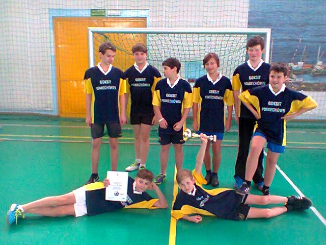 Dnia 29 stycznia na obiekcie Nowodworskiego Ośrodka Sportu i Rekreacji w Nowym Dworze Mazowieckim rozegrane zostały Mistrzostwa powiatu w piłkę nożną halową chłopców. Uczniowie Szkoły Podstawowej w Pomiechówku prowadzeni przez p. Pawła Laskusa punktualnie stawili się na miejscu gotowi podjąć rywalizację sportową z innymi przybyłymi drużynami. Oprócz nas na miejscu stawili się uczniowie reprezentujący Szkołę Podstawową nr. 4 w Nowym Dworze Mazowieckim, Szkołę Podstawową w Starych Pieścirogach i Szkołę Podstawową w Zakroczymiu. Po przywitaniu drużyn i losowaniu celem wytypowania kolejności gry zespołów, główny sędzia czuwający nad prawidłowym przebiegiem spotkań p. Jarosław Wróblewski rozpoczął pierwszy mecz pomiędzy drużyną SP4 i SP z Starych Pieścirogów. Walka była zażarta i zakończyła się wynikiem 3:2 dla drużyny z Nowego Dworu Mazowieckiego. Kolejny mecz odbył sie między drużyną z Pomiechówka a uczniami z Zakroczymia. Od samego początku ton meczu nadawała drużyna prowadzona przez p Pawła Laskusa strzelając w pierwszej połowie bramkę. Zdawało się iż takim wynikiem zakończy się całe spotkanie jednak w końcówce drugiej połowy po błędzie w obronie zawodnicy z Zakroczymia zdołami strzelić kontaktową bramkę tym samym wyrównując i kończąc spotkanie wynikiem 1:1. Szkoda tego remisu gdyż Pomiechówek był od samego poczatku zdecydowanie lepszy. Kolejny mecz rozegrany został pomiędzy SP4 a drużyną z Zakroczymia. Mecz zakończył sie wynikiem 1:0 dla gospodarza turnieju, ustawiajac tą drużynę na pierwszym miejscu tabeli. Trzecie z kolei spotkanie odbyło się pomiędzy Naszymi Orłami, a drużyną z Pieścirogów Starych. Nasza drużyna mocno zmotywowana przez trenera od razu przystąpiła do ataku górując nad przeciwnikiem pod każdym względem. Wynik 5:0 mówi sam za siebie, a piękna gra Naszych uczniów podobała się wszystkim zgromadzonym w hali. Ostatni mecz odbył się pomiędzy liderem tabeli chłopcami z SP4, a pomiechowskimi młodymi piłkarzami :-) Walka była bardzo zacięta, a Nasi chłopcy wiedzieli że tylko wygrana daje im pierwsze miejsce w turnieju. Sytuacje podbramkowe występowały zarówno z jednej jak i drugiej strony jednak nikt nie potrafił przechylić ostatecznie szali zwycięstwa na swoją stronę i wynik meczu zakończył sie bezbramkowym remisem. Pierwsze miejsce tym samym wywalczyła drużyna z Szkoły Podstawowej nr.4 Drugie miejsce drużyna z Pomiechówka Trzecie miejsce piłkarze ze Starych Pieścirogów, a ostatnie uczniowie z SP w Zakroczymiu. Warto nadmienić iż Nasi podopieczni nie przegrali żadnego meczu, a na turnieju wykazali sie wielką wolą walki. Wygrali spotkanie najwiekszą ilością bramek, a zawodnik pomiechowskiej drużyny Mateusz Dzbański został królem strzelców całego turnieju. Skład drużyny Szkoły Podstawowej w Pomiechóku:Mateusz Dobrzański, Mateusz Dzbański, Bartek Cuber, Bartek Gajewski, Mateusz Otowski, Kajetan Piwowarek, Jan Skrzypczak, Krzysztof Żułtak. |