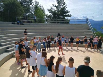 W dniu dzisiejszym uczniowie poznawali grecką kulturę. Odwiedzili dwie miejscowości Aegani gdzie w amfiteatrze greccy przyjaciele uczyli ich tańca Zorby.
