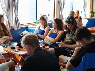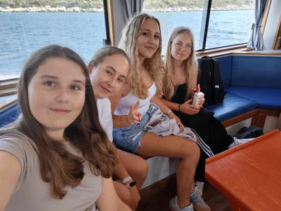Dzień upłynął nam cudownie 🥰 a gościła nas malownicza wyspa Skiathos, gdzie zażywaliśmy kąpieli zarówno morskich , jak i słonecznych 🌞A podczas dwugodzinnego rejsu na wyspę i z powrotem zabawom i tańcom nie było końca 🕺💃! Zobaczcie jak się bawiliśmy 😻⬇️