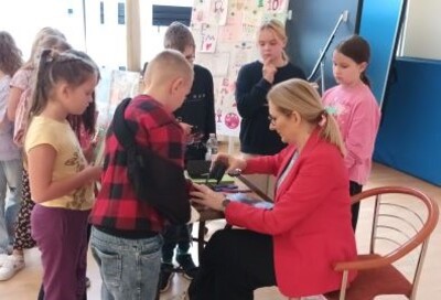 Na pamiątkę otrzymaliśmy od autorki autografy, a najaktywniejsi uczniowie nagrodzeni zostali zakładkami do książek.