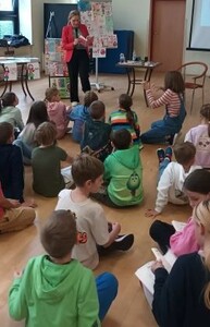Pani Agnieszka przeczytała fragmenty swojej najnowszej książki oraz przeprowadziła krótki quiz z okazji 10 urodzin Emi – głównej bohaterki.
