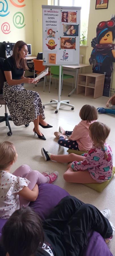 W tym dniu w bibliotece szkolnej uczniowie klas 1 wysłuchali bajki